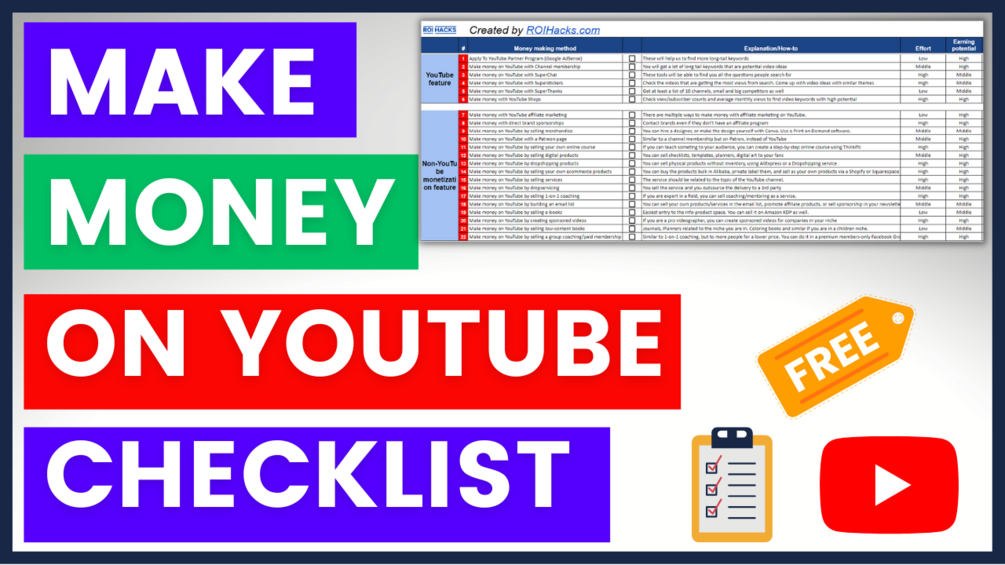 Our YouTube monetization checklist is currently free but we might charge money for it in the future, so get it now for free until you can.